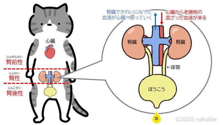 急性腎不全は犬と猫の腎臓が突如として機能を失う病気で、原因としては、腎前性腎性腎後性の3つに分けられます。