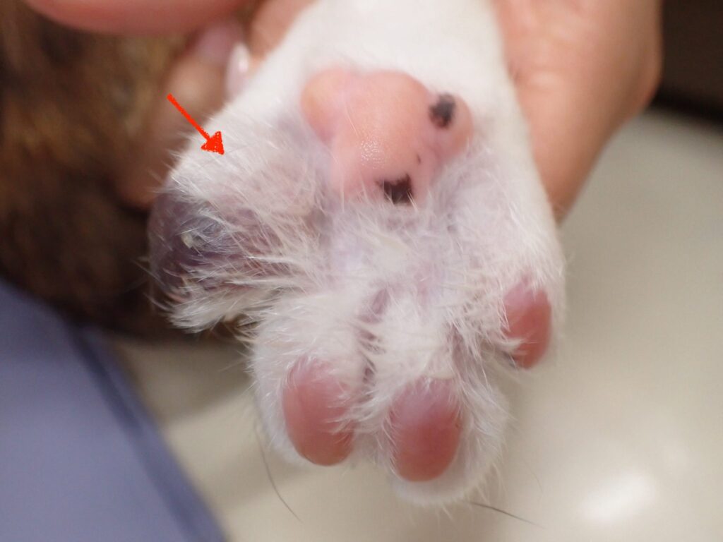 この癌は、、特に関節周囲に発生することが多いため、疼痛・跛行が見られます。