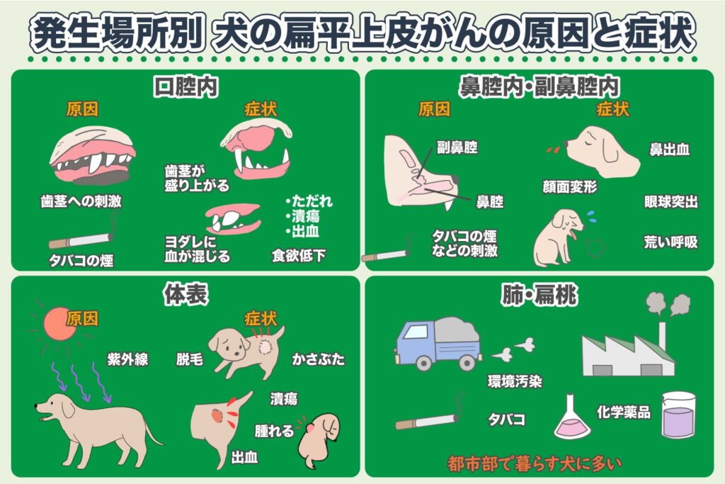 犬の扁平上皮癌において、その具体的な原因は明らかになっていません。