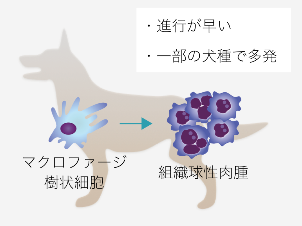 また、これらとは異なる種類で『血球貪食性組織球肉腫』と言う腫瘍もあります。
